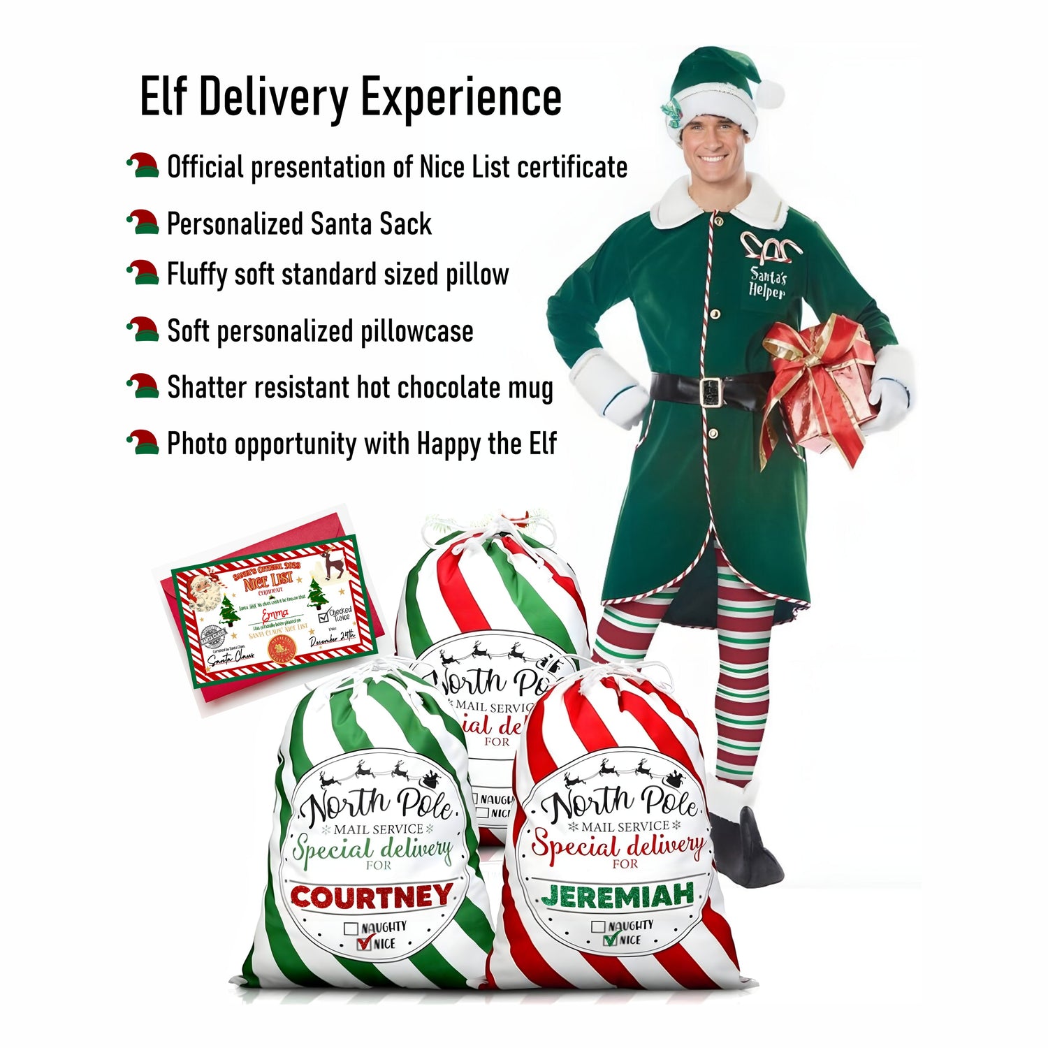Make this holiday season extraordinary with our Magical Santa Sack and Elf Delivery Experience! Limited availability, so order now to secure your spot on Santa's Nice List.
